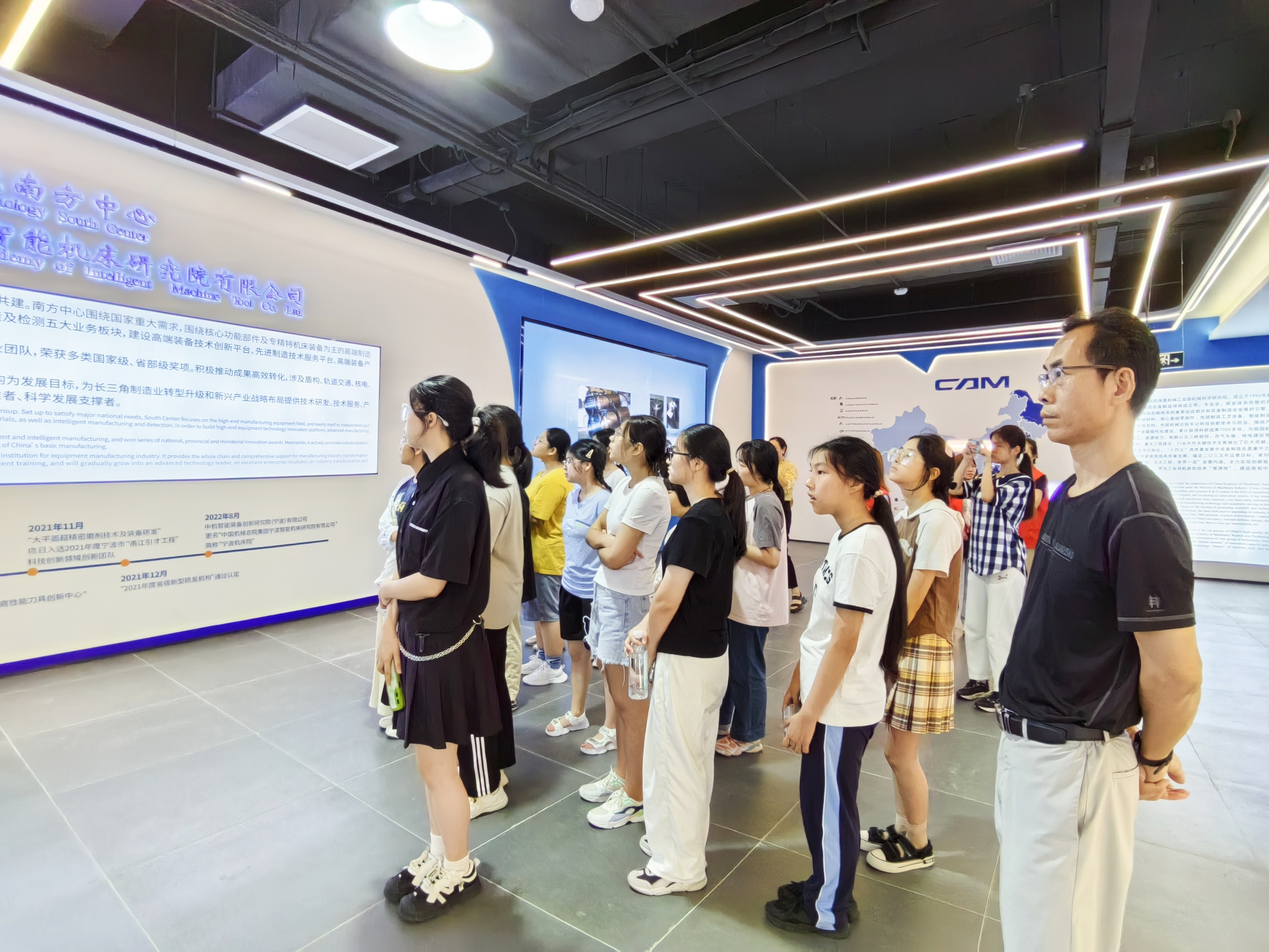 这次活动,通过“动静结合、交流互动”等方式展开,在参观公司展厅,让学习了解宁波机床院的发展、建设历程、成果成就,了解作为国资央企服务国家发展大局的使命担当;在参观实验室,多角度、全方位了解科研创新、新先技术发展等。在交流环节,2位外国专家和1位博士分享了如何成长成才的经验,鼓励学生提升自信、开阔眼界,努力学习;分享后,学生与专家、博士进行了互动交流。